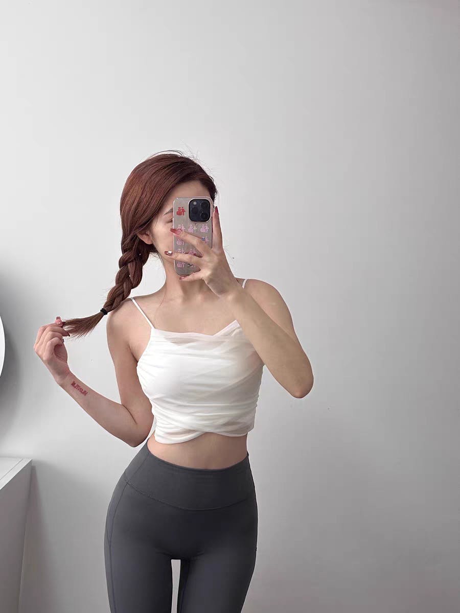 - メッシュ素材を使用した胸元の交差ドレープが美しいキャミソールです。