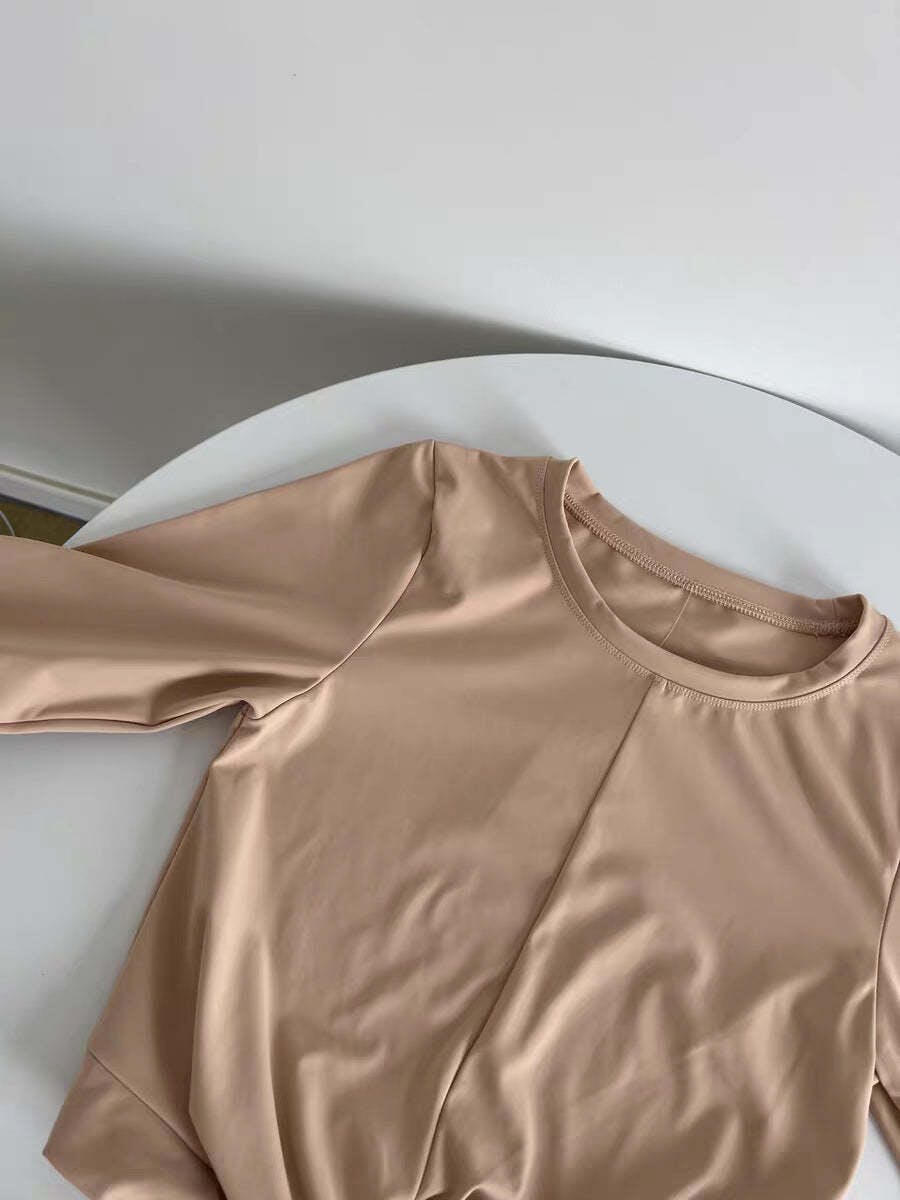 • 定番のラウンドネックに裾のねじりディテールがアクセントのメリハリのあるボディラインを演出するクロップド丈長袖シャツです。
