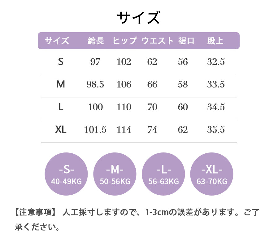 A: 商品ページにサイズ目安表がありますのでご参考ください。こちらに直接お問合わせていただいても大丈夫です。