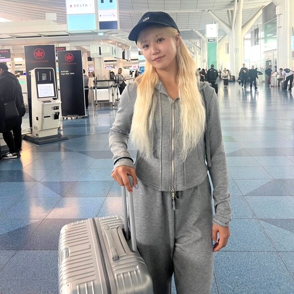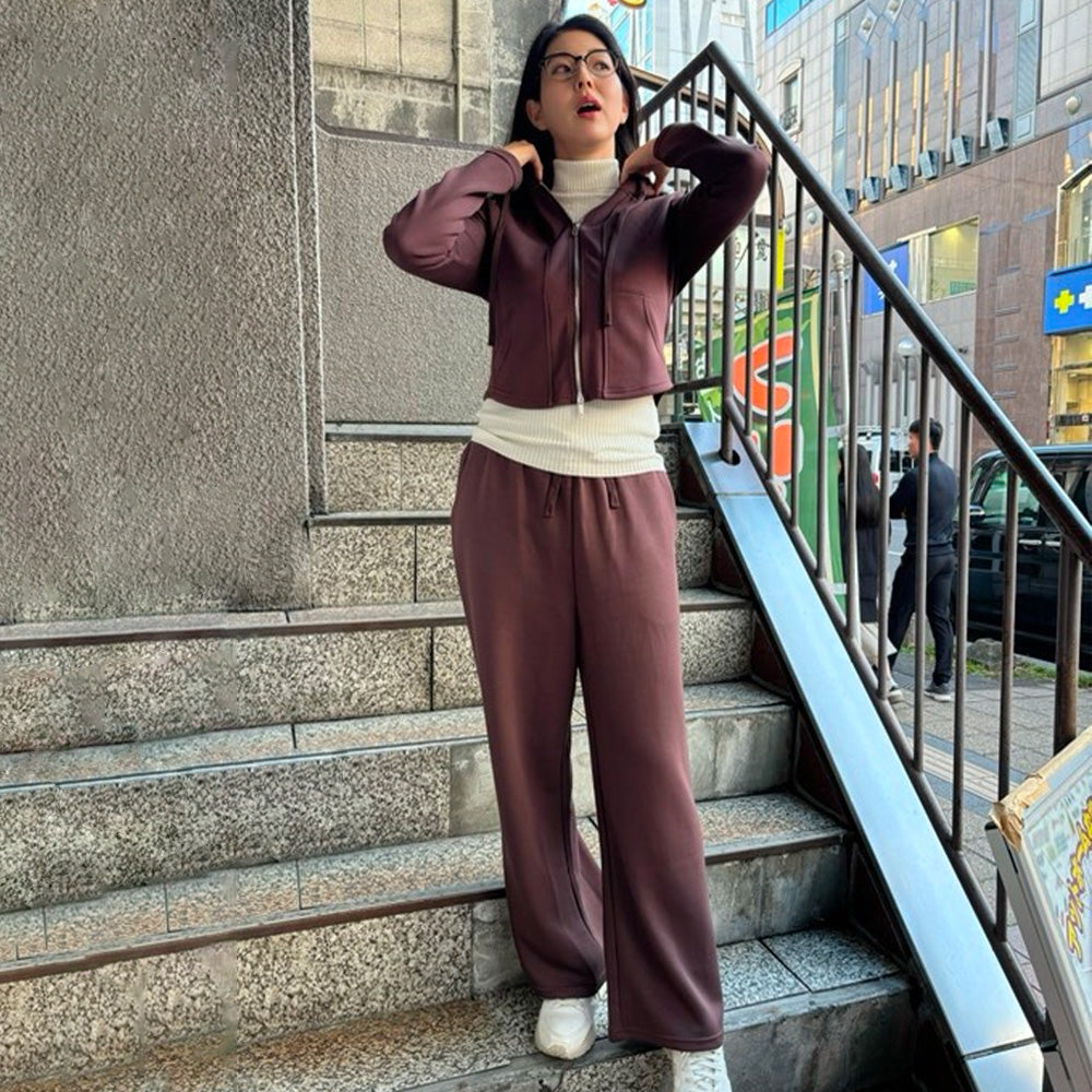 - スウェット素材でカジュアルな印象もありつつ太すぎない程よいワイドシルエットと長めの丈感がポイント。