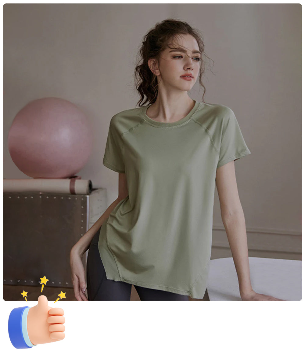 スポーツウエアの機能性も担保しつつ、着たままヨカ教室に行ける可愛さ。レギンス、ショートパンツ、ジーパンなど、どんあボトムも合わせやすい万能アイテム。
