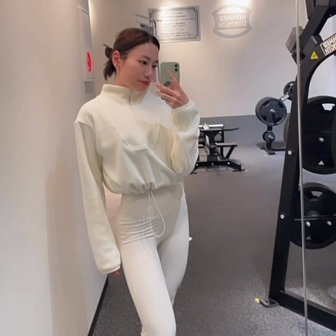 - 短めの丈感で、裾部分は絞ることができ、元気いっぱいで若々しく見えます。