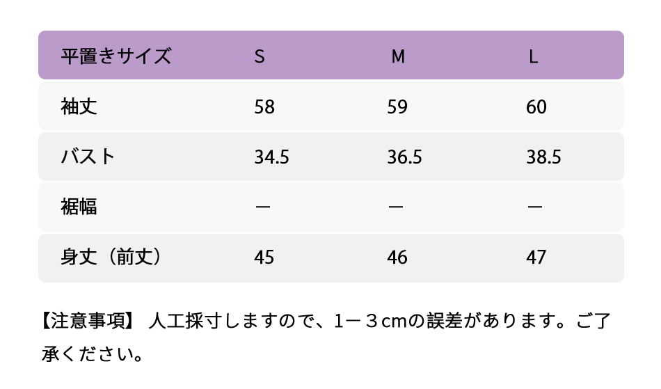 A: 商品ページにサイズ目安表がありますのでご参考ください。こちらに直接お問合わせていただいても大丈夫です。